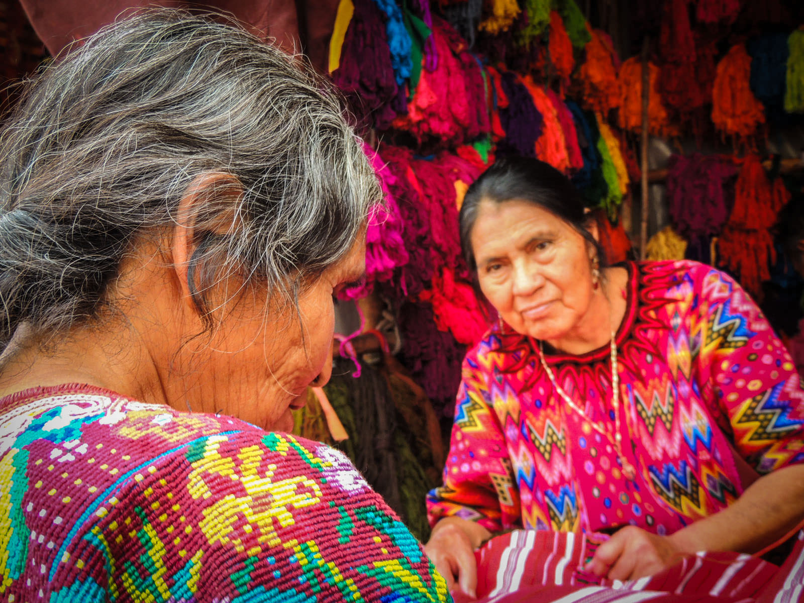 En muchas regiones de Mesoamérica (área conformada por México, Guatemala y parte de Honduras y El Salvador), observarás a las mujeres vestir huipiles. Esto es una túnica suelta y sin mangas, compuesta por dos o más lienzos tejidos en telar de cintura y cocidos de forma vertical; generando un atuendo largo que cae sobre el torso, con tres aberturas superiores para el cuello y los brazos.