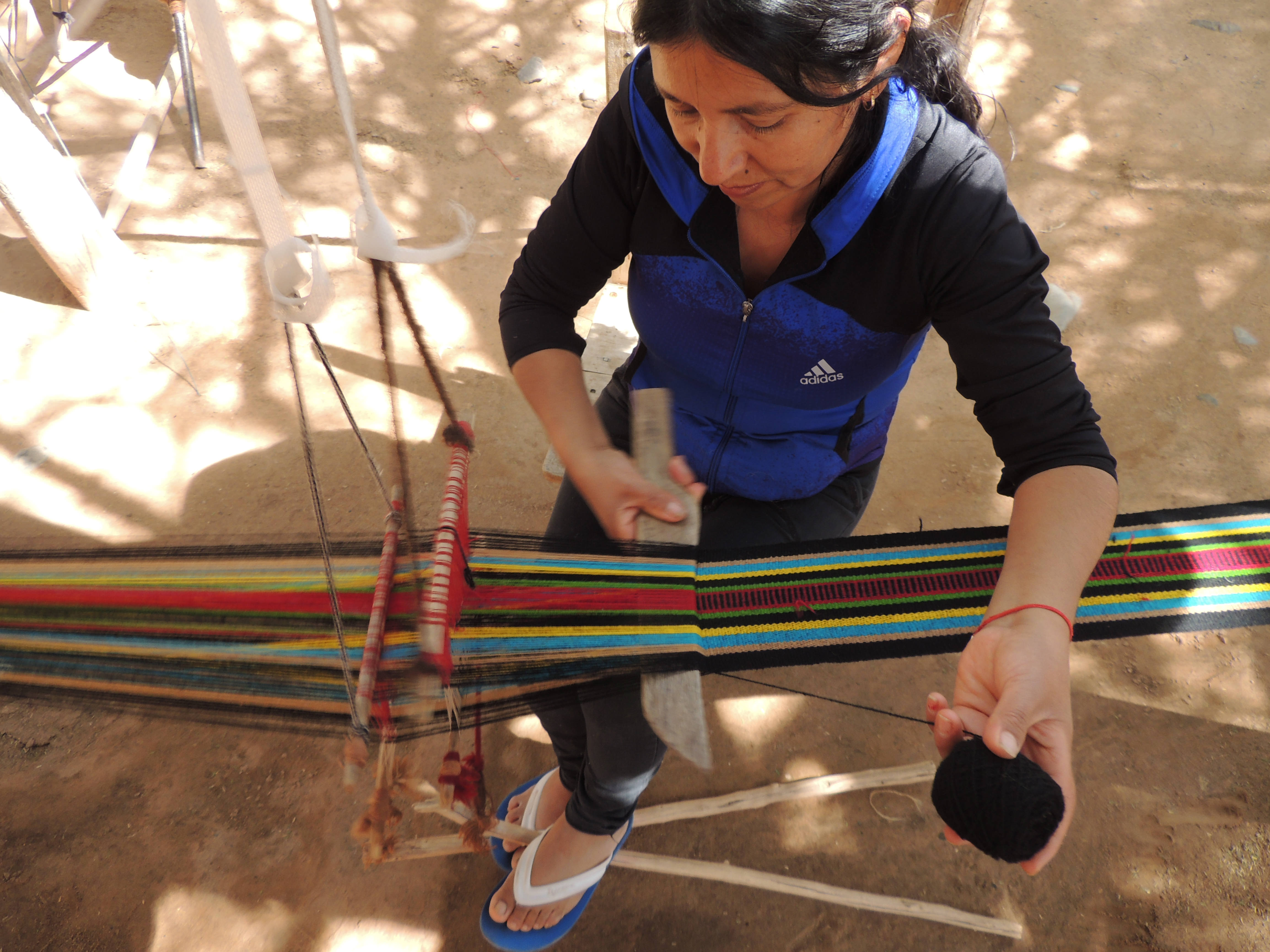 En esta región se teje principalmente con lana de oveja y llama y algunas veces con pelo de vicuña en los distintos tipos de telar que manejan. El más chico es el telar que Marcela usa para crear fajas y cintos. Éste utiliza dos lisos angostos, manipulados por pedales de palo.